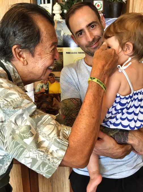 There are many places in Oahu that sell shaved ice, but we only tried two. These two were reported by others to be the best on the island so we had to check them out. First up was Uncle Clay’s House of Pure Aloha near Honolulu. This place was amazing. Not only were the shaved ice outstanding, I’ll get to that in a bit, but the service was top notch. Never in my life have I been treated like I was invaluable to the success or failure of a business. Uncle Clay, pictured below with my lovely wife and dear mother, personally greeted us upon arrival and continued to visit with us as we enjoyed his delicacies. I’ve been to tons of restaurants, bars, hotels, car dealerships and friends houses that all claim to treat you like family. They all fail miserably when compared to the hospitality exhibited by Uncle Clay. He doesn’t just treat you like family, he adopts you. He accepts you into his ohana, family, and you stay there until you walk out the door.