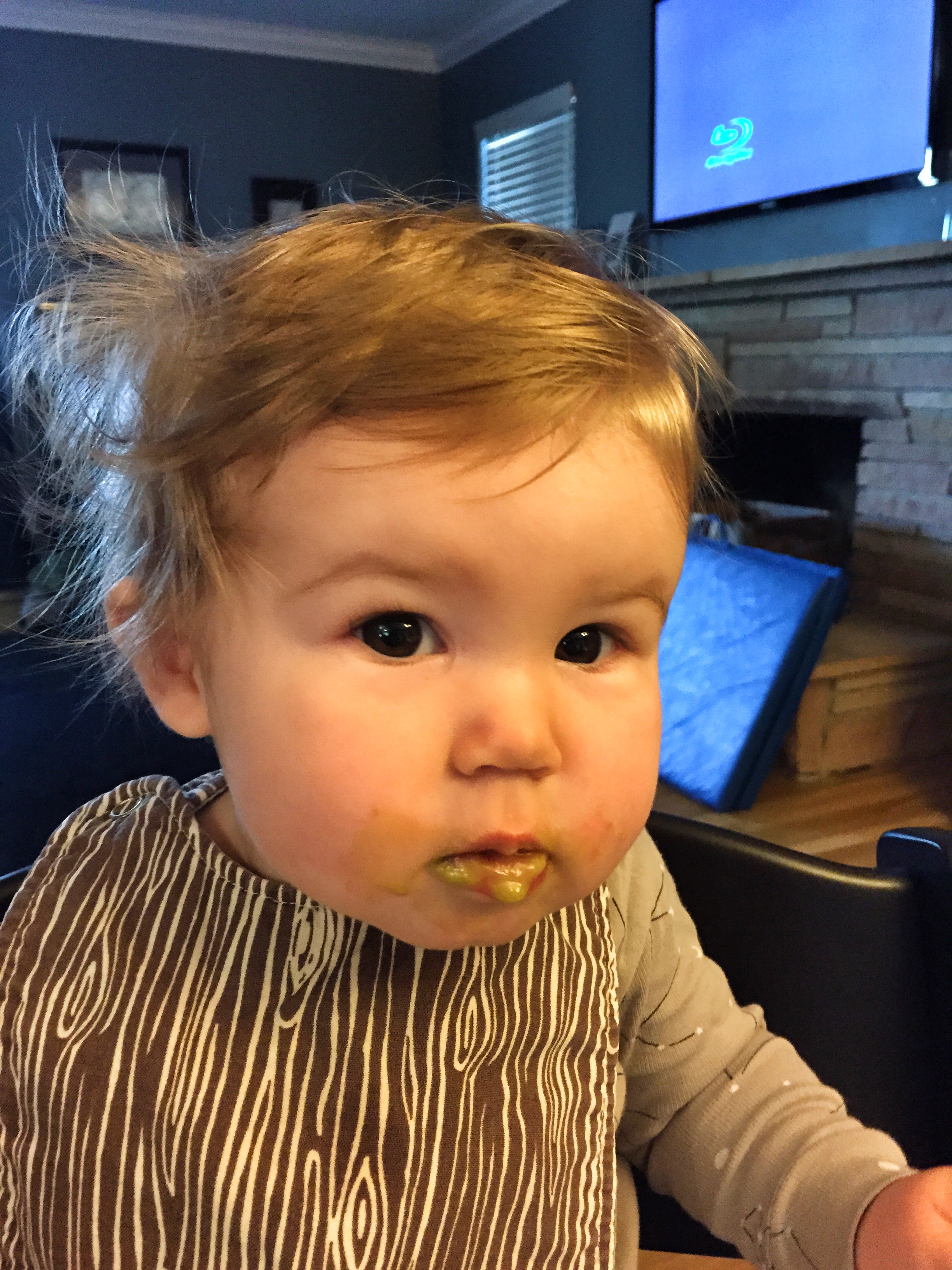 Below is a montage of ridiculous faces she makes while she is eating, with super awesome nap hair.